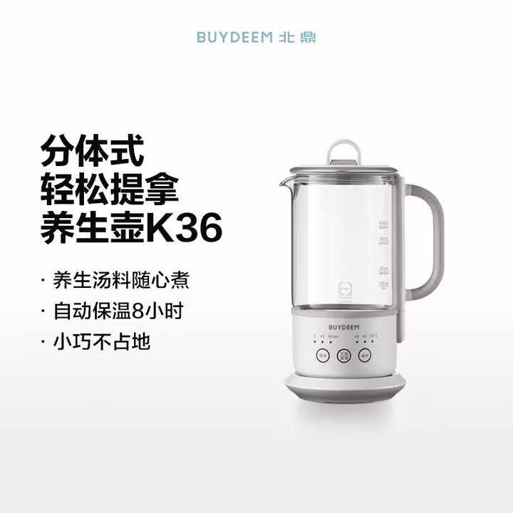 北鼎煮茶养生壶 多功能保温壶 办公室煮茶壶 分体式便携煮茶器 玻璃恒温烧水壶 花茶咖萃取壶 【分体式单壶】本白色K36 0.6L
