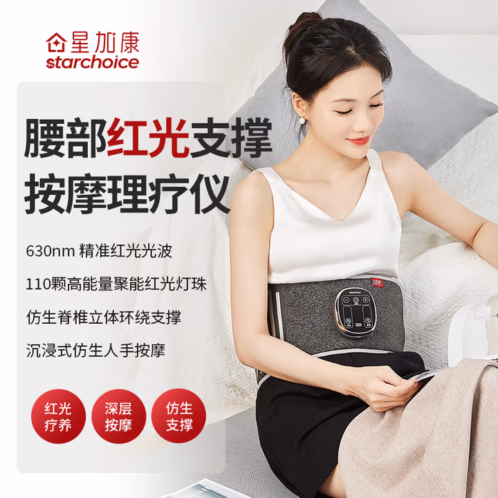 星加康腰部按摩器腰肌劳损热敷红光支撑理疗仪按摩仪舒缓腰椎间盘突出送礼父母男女礼物荐震动发热护腰带 腰部红光支撑+按摩款