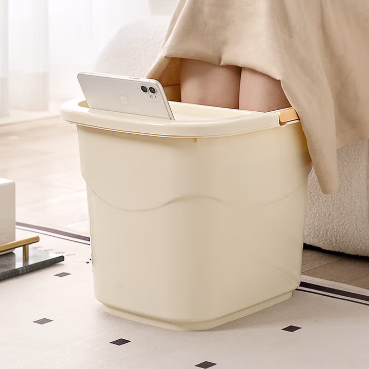 派居客泡脚桶过小腿高深桶加高家用按摩洗脚盆过膝盖熏蒸养生塑料 【加厚高款30cm】粉白 带盖+按摩轮
