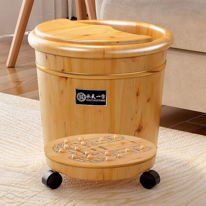 俏博莱双人泡脚专用桶足疗桶盆过小腿过膝保温加厚家用脚盆 加厚木纹足浴桶-大号