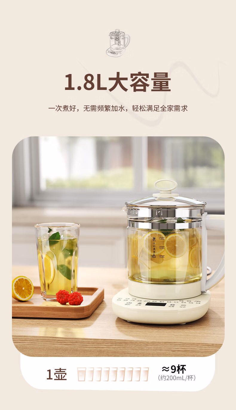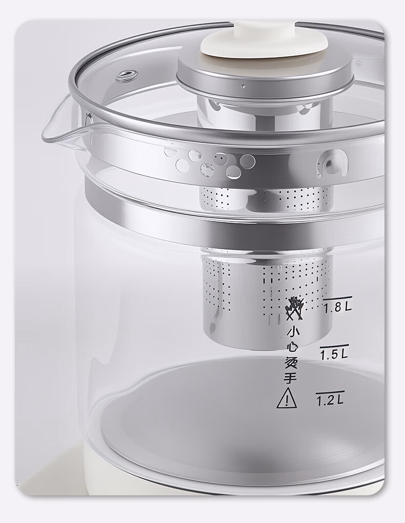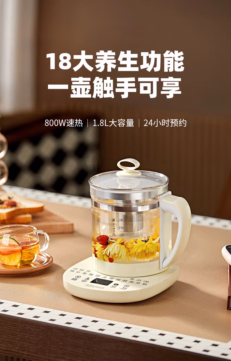 养生壶煮茶器炖煮一体煮茶壶烧水壶玻璃小型一人办公室小型女士 1.8L 智能保温+无茶漏