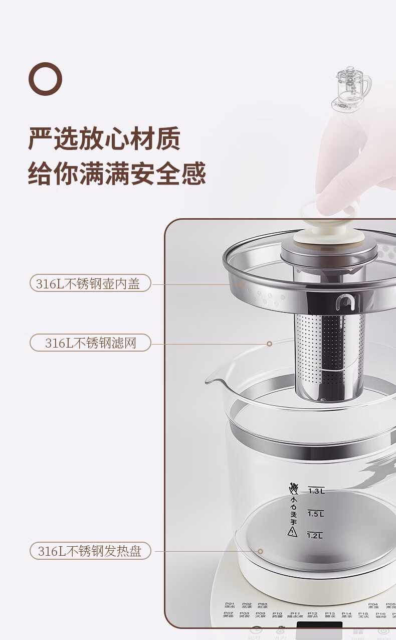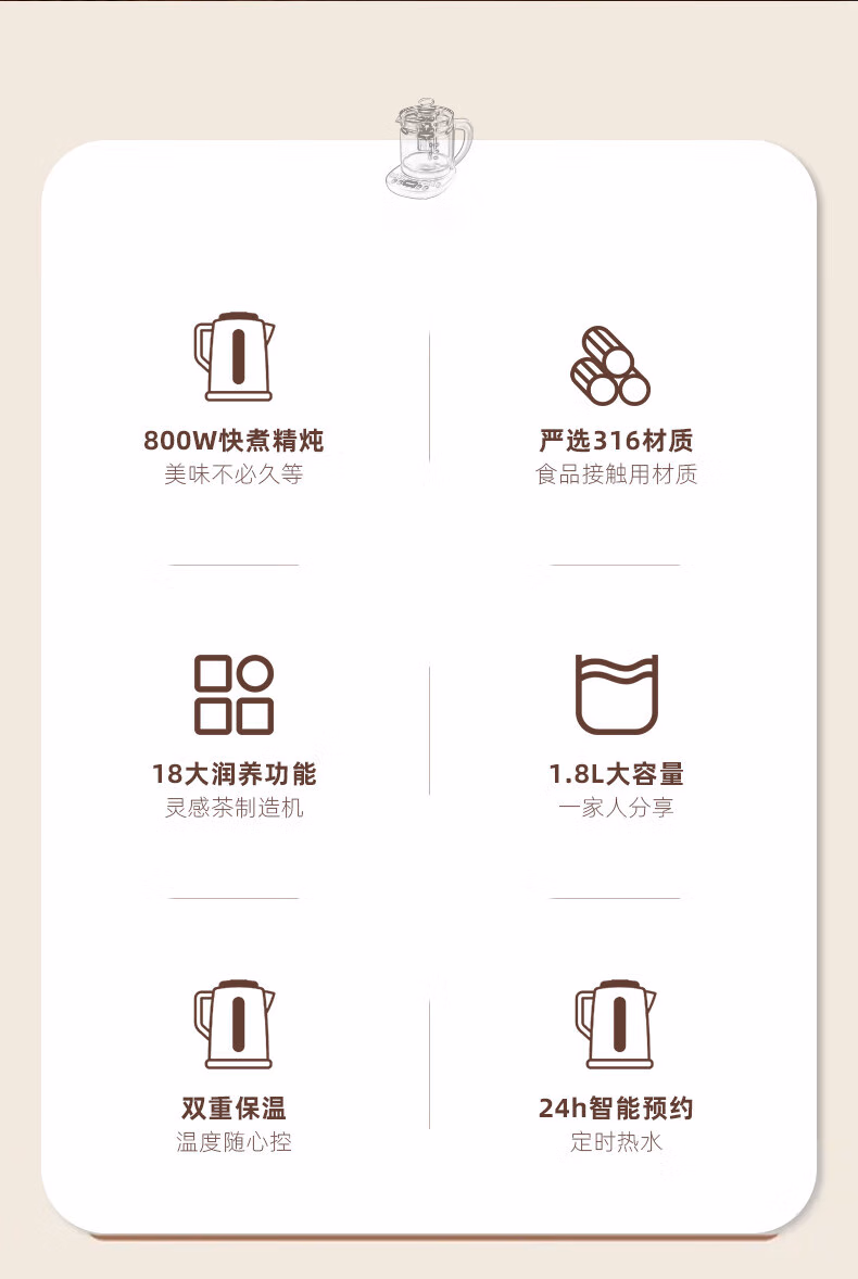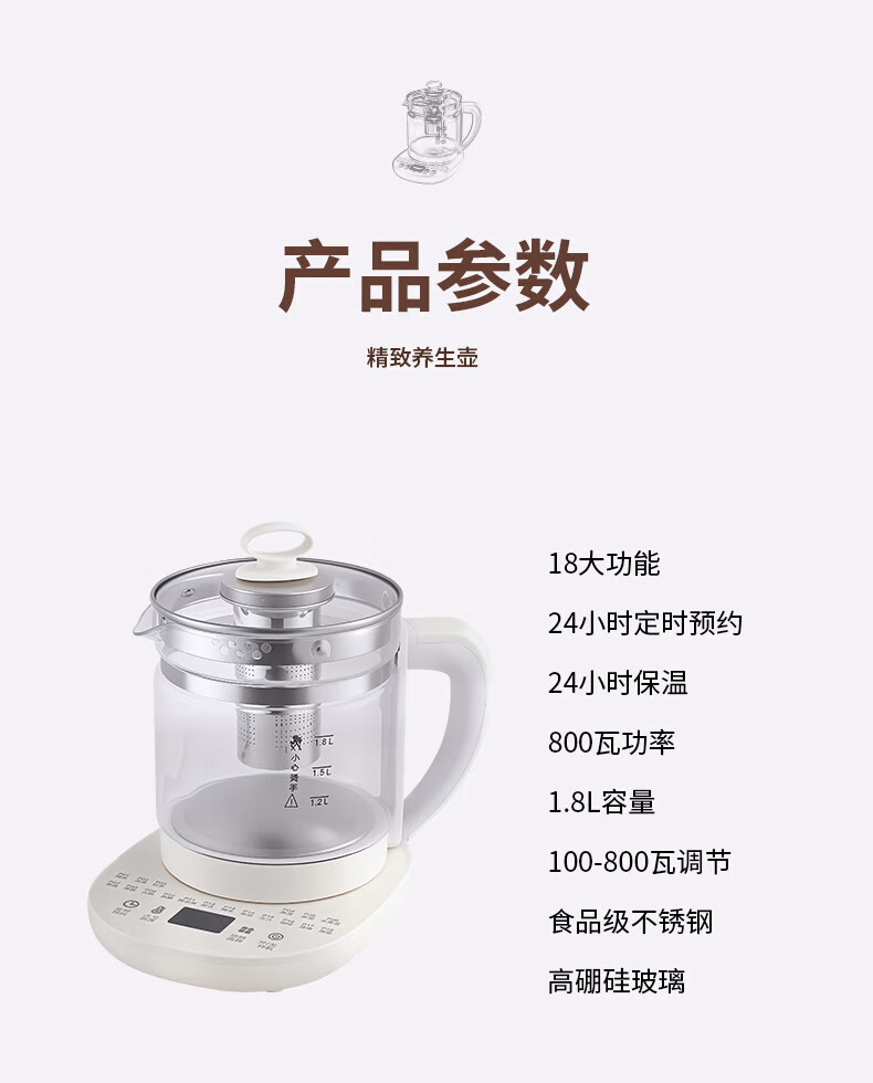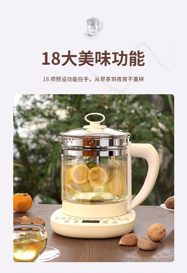养生壶煮茶器炖煮一体煮茶壶烧水壶玻璃小型一人办公室小型女士 1.8L 智能保温+无茶漏