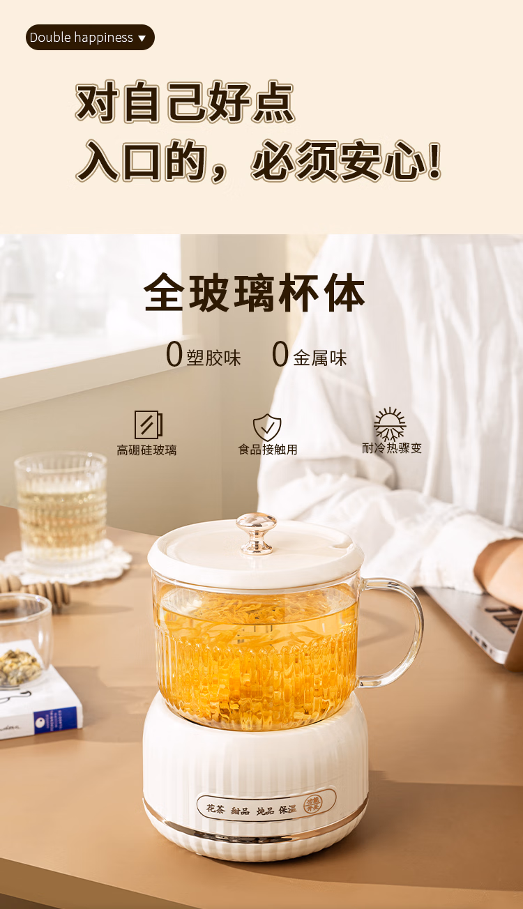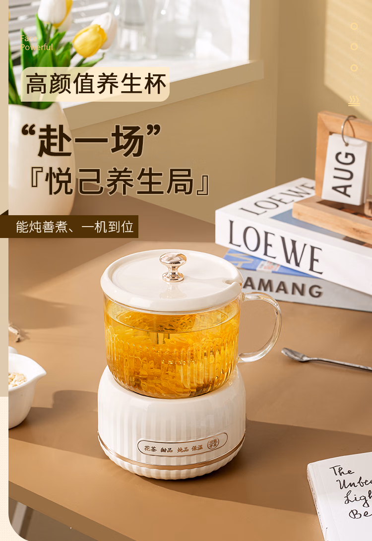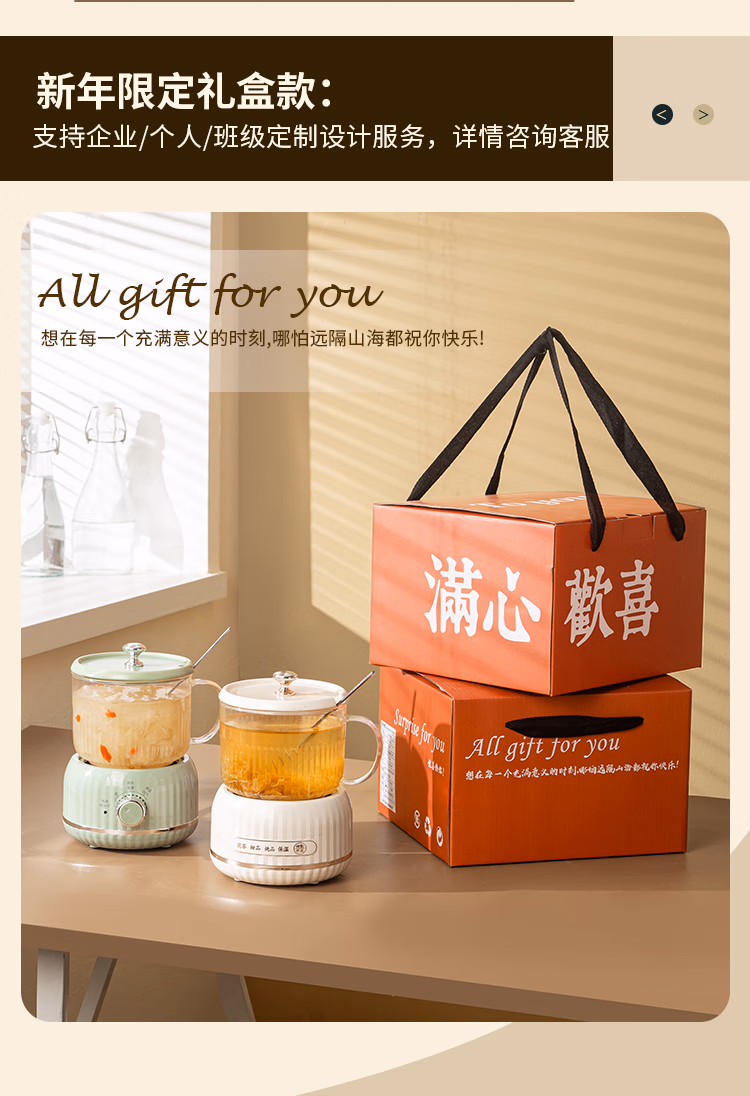 礼恋重阳节礼物送长辈养生壶礼盒乔迁伴手礼品员工奖品纪念品生日礼物 斜纹款智能白色单杯0.6L 重阳节礼物企业公司采购定制