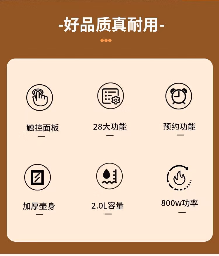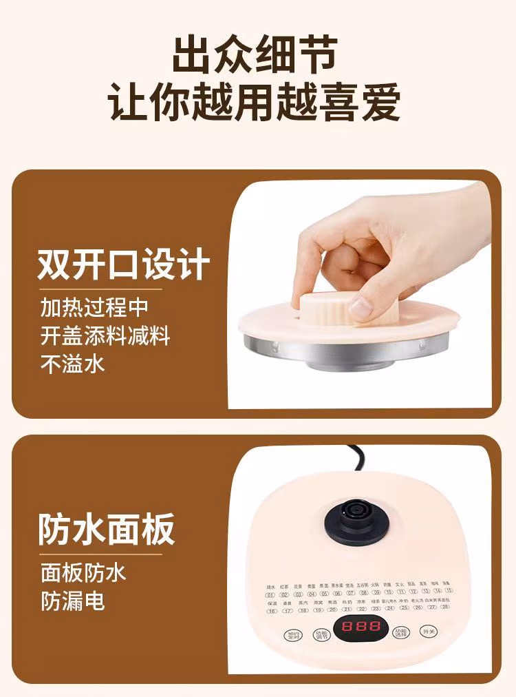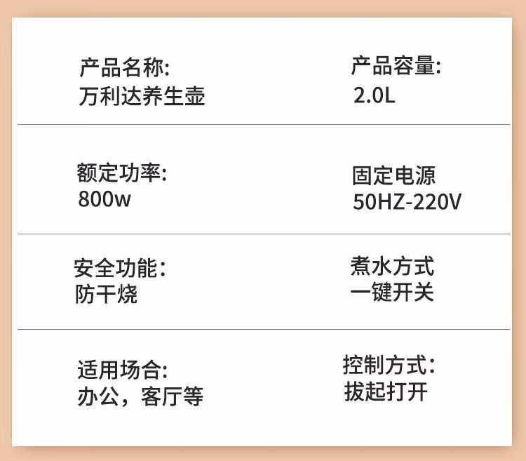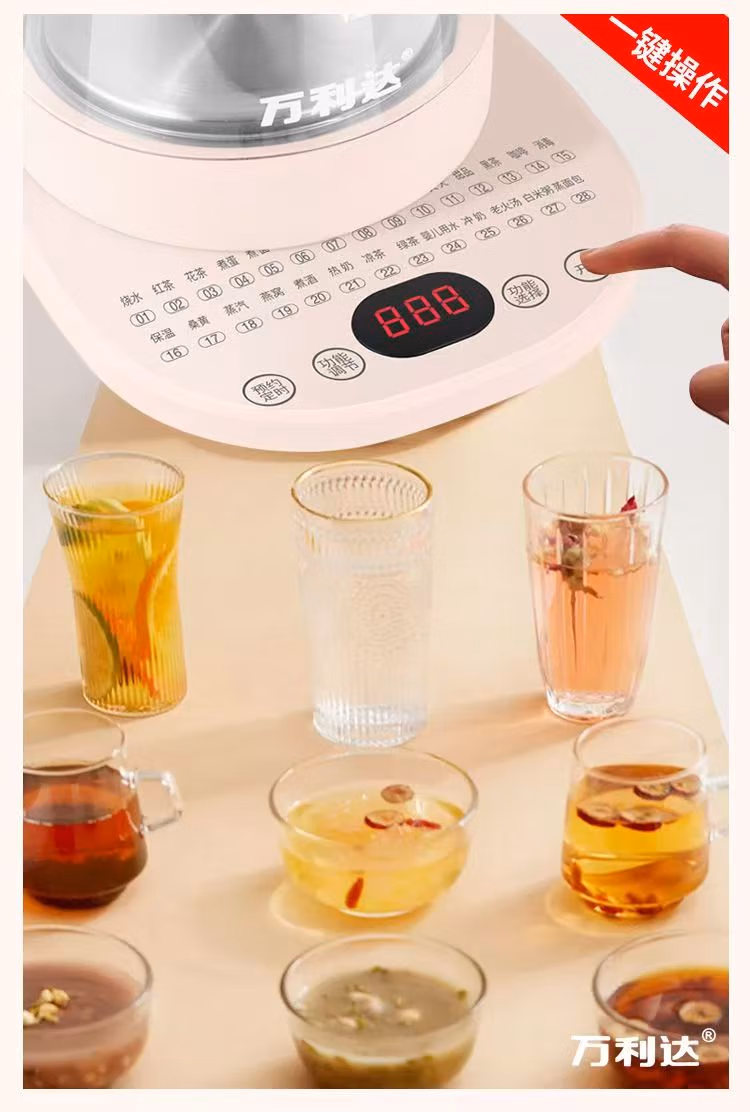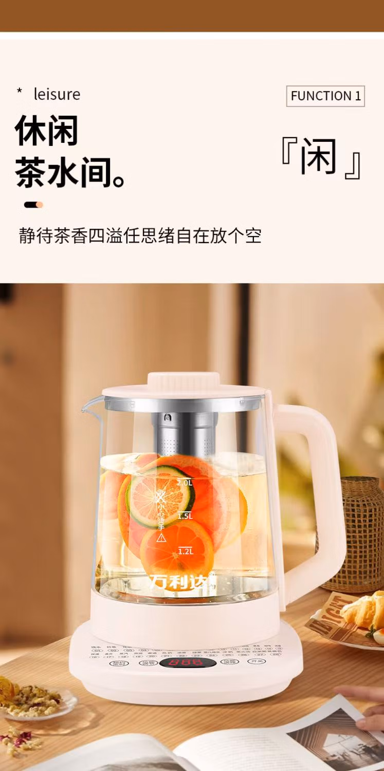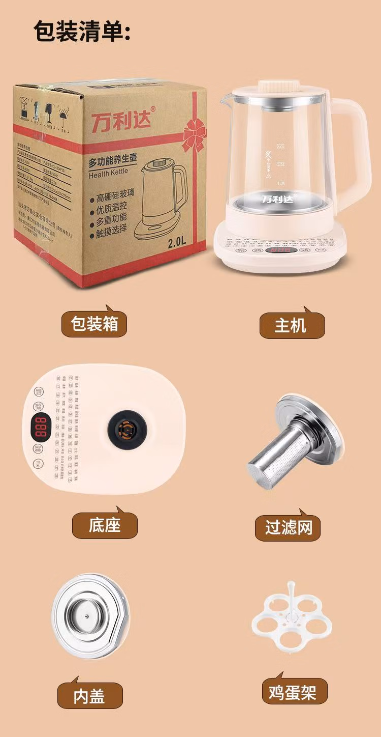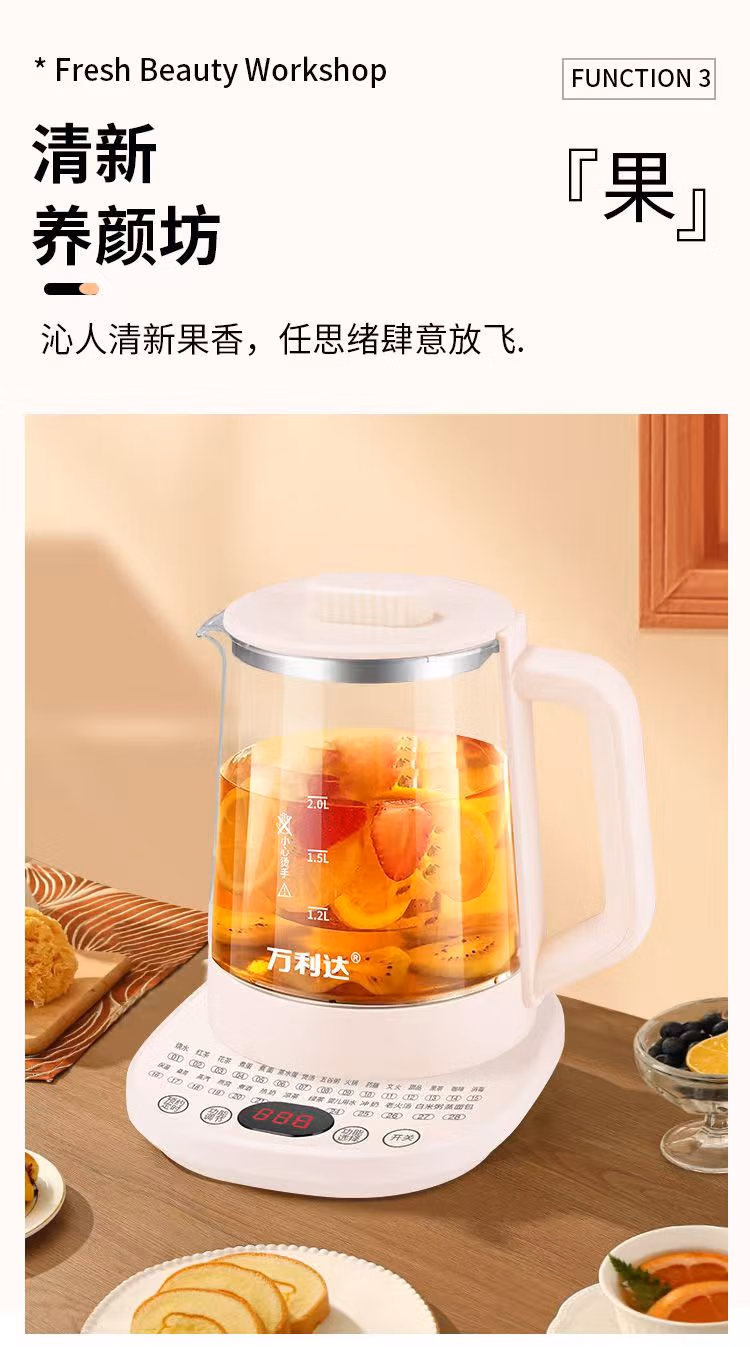 万利达电热水壶烧水壶家用耐用恒温养生壶加厚玻璃自动断电花茶壶食品级 杏色【加厚玻璃】智能恒温 2L
