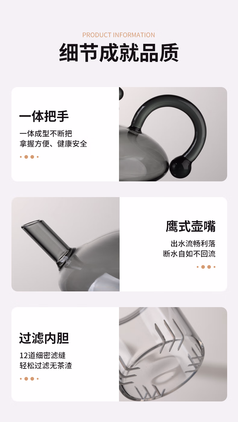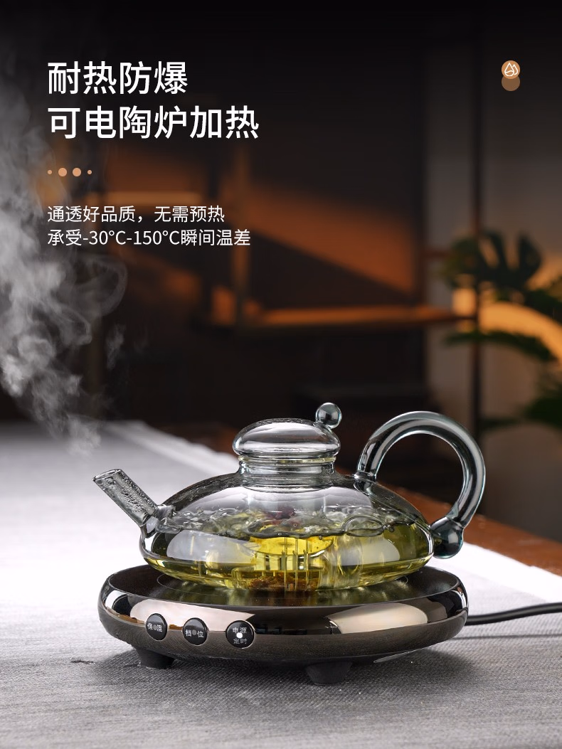 高茗鼠尾玻璃煮茶壶2025新款电陶炉煮茶器财鼠高档加厚茶水分离泡茶壶 财鼠壶【单壶】 550ml