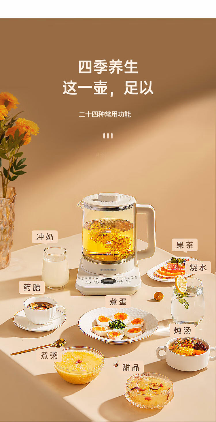 养生壶 1.8L全自动煮茶壶 花茶壶煮茶器 24h预约烧水壶 12小时智能恒温 11档控温电热水壶 2.2L 【热销爆款】14大养生功能
