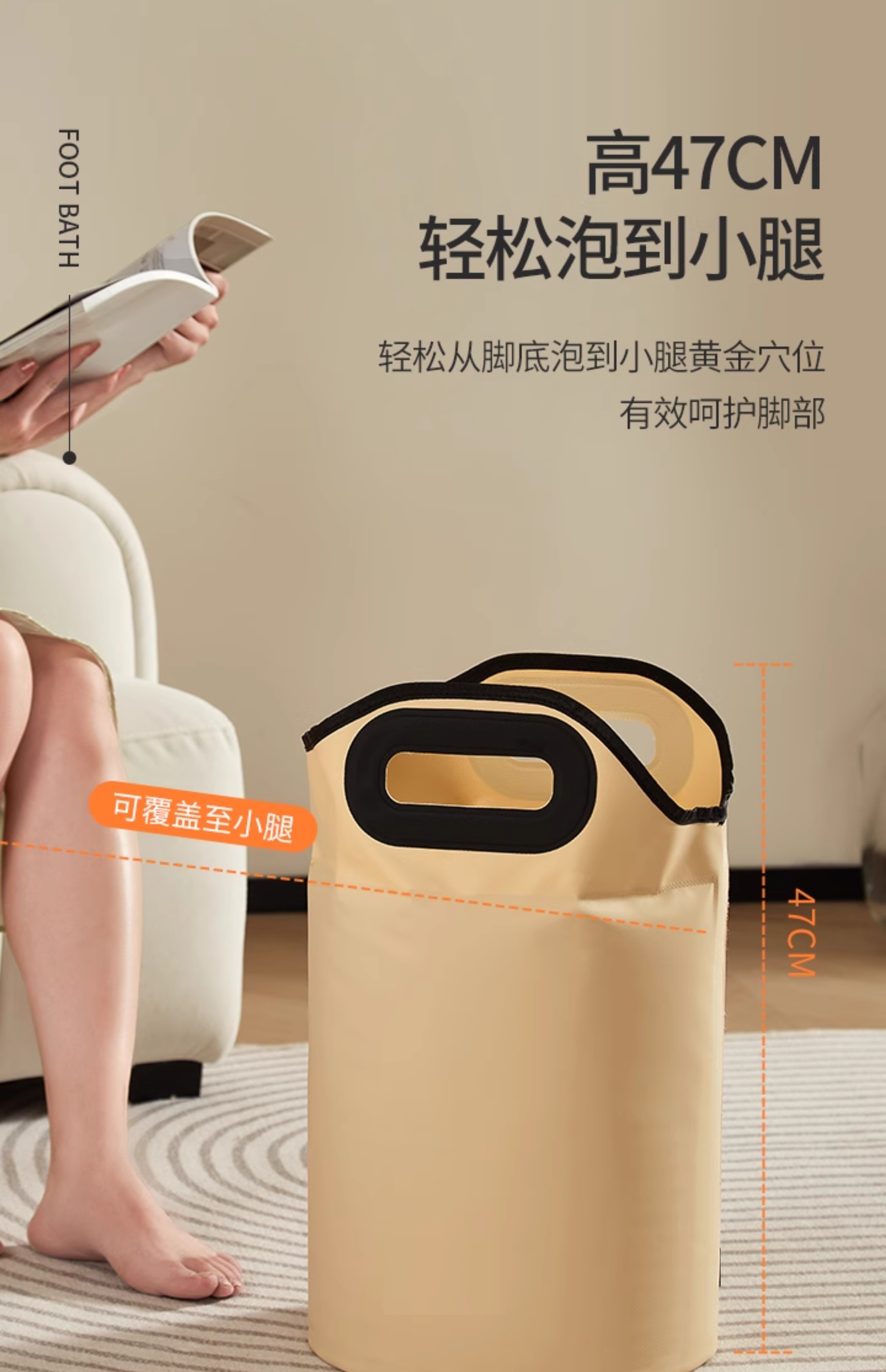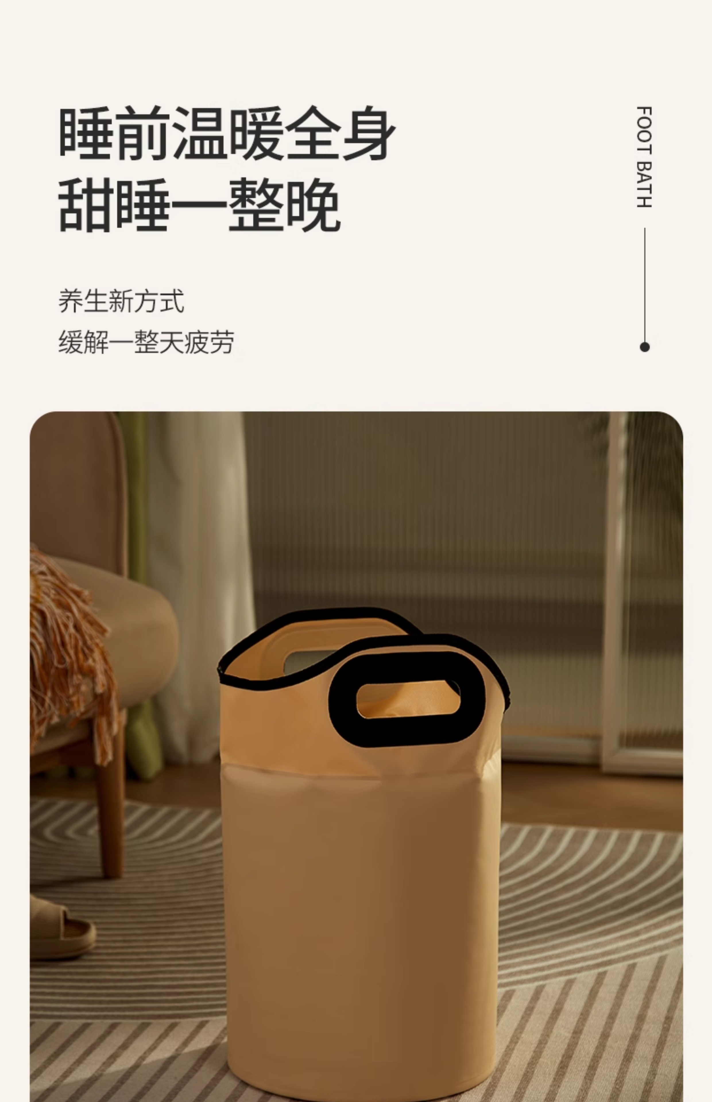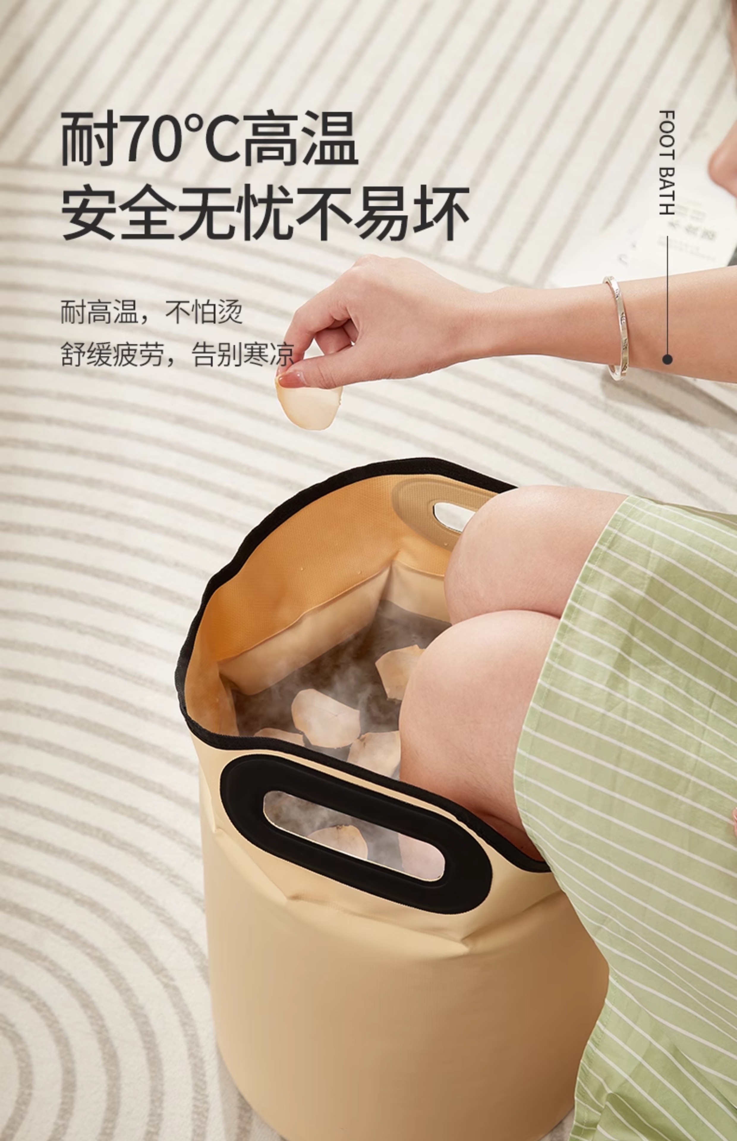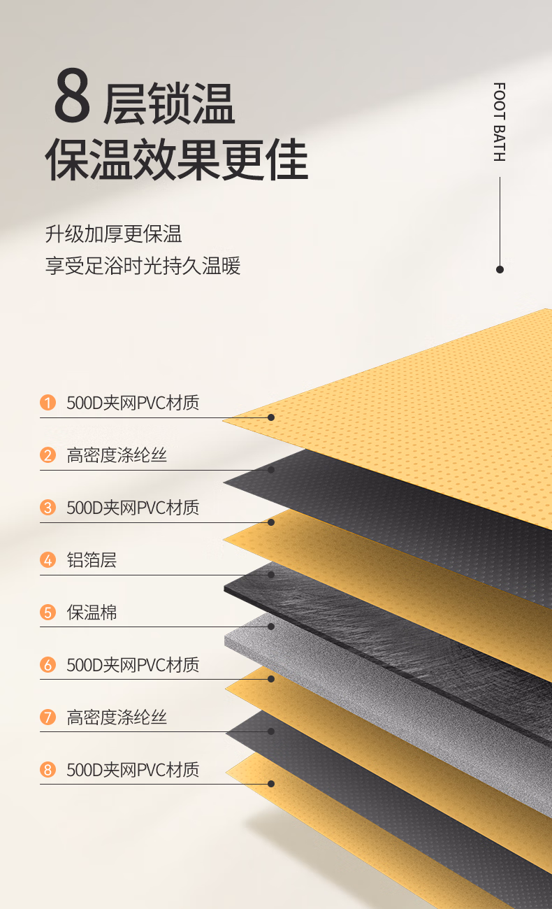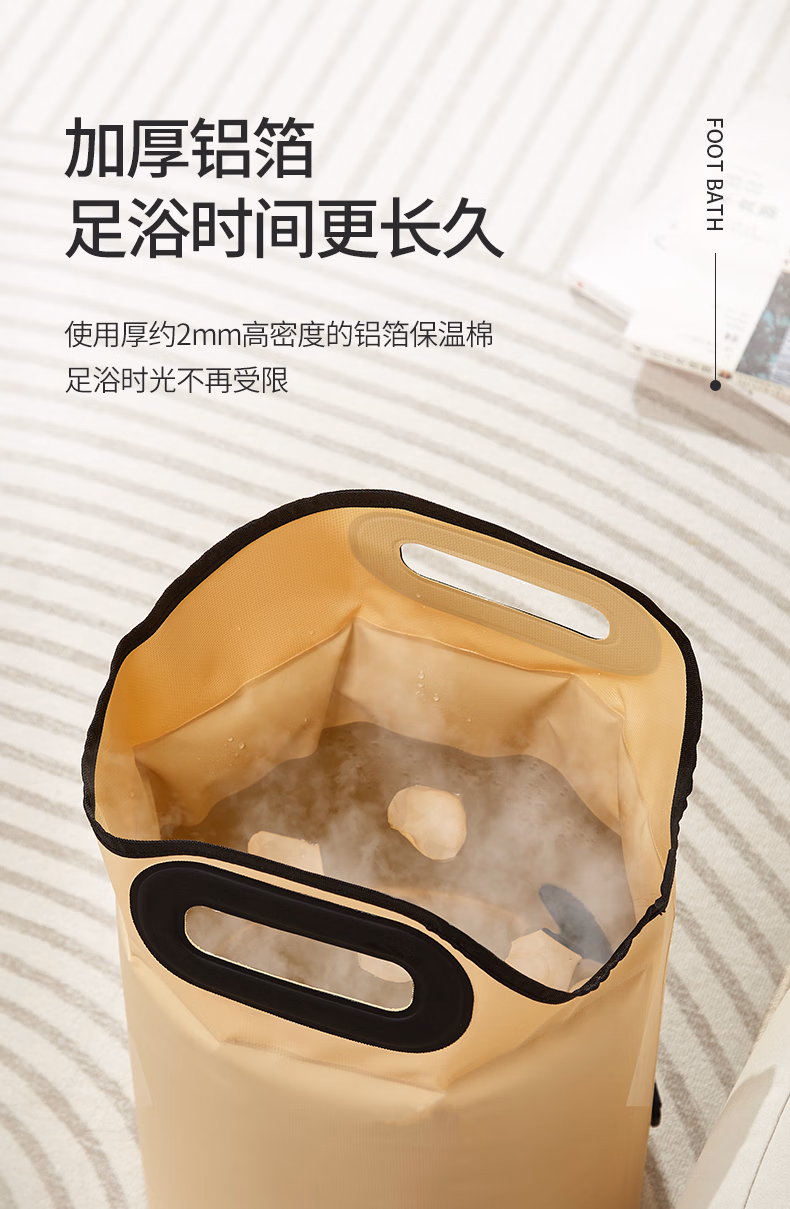 泡脚桶铝箔保温洗脚桶过小腿家用防漏足浴桶可折叠泡脚袋初心同款 【简约纯色米】初心同款一体热压夹网防漏铝箔保温 1个装