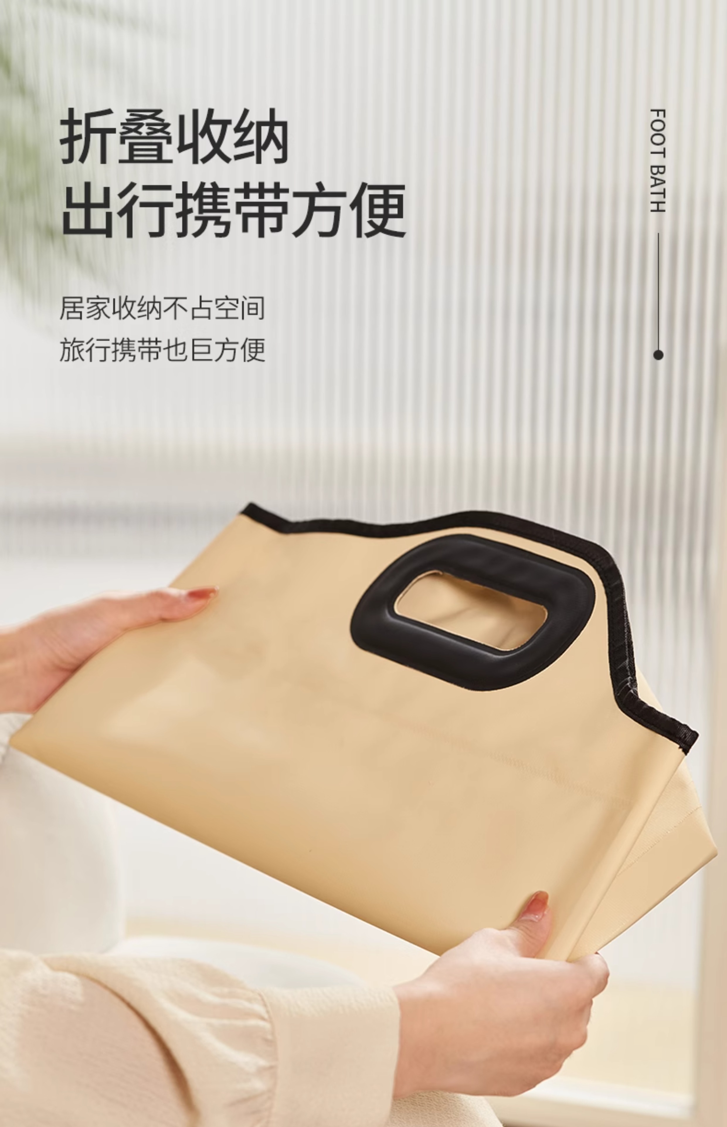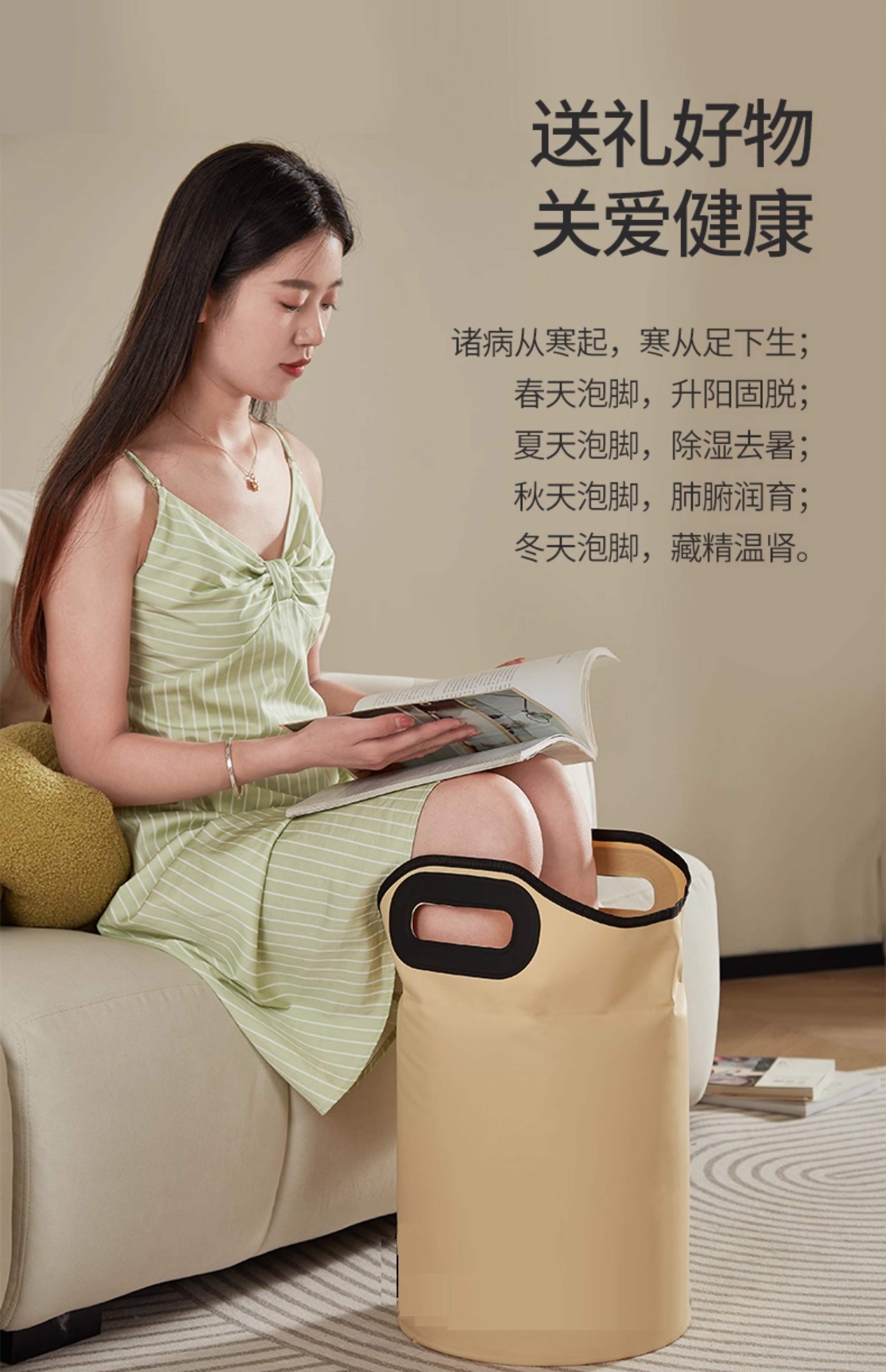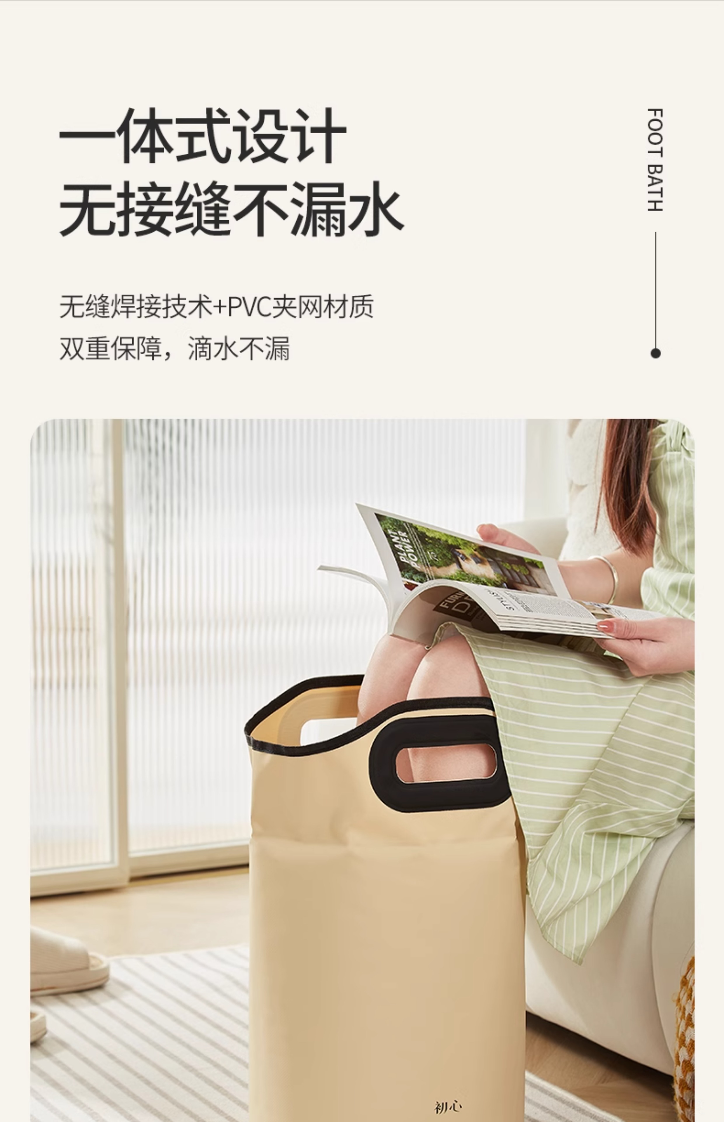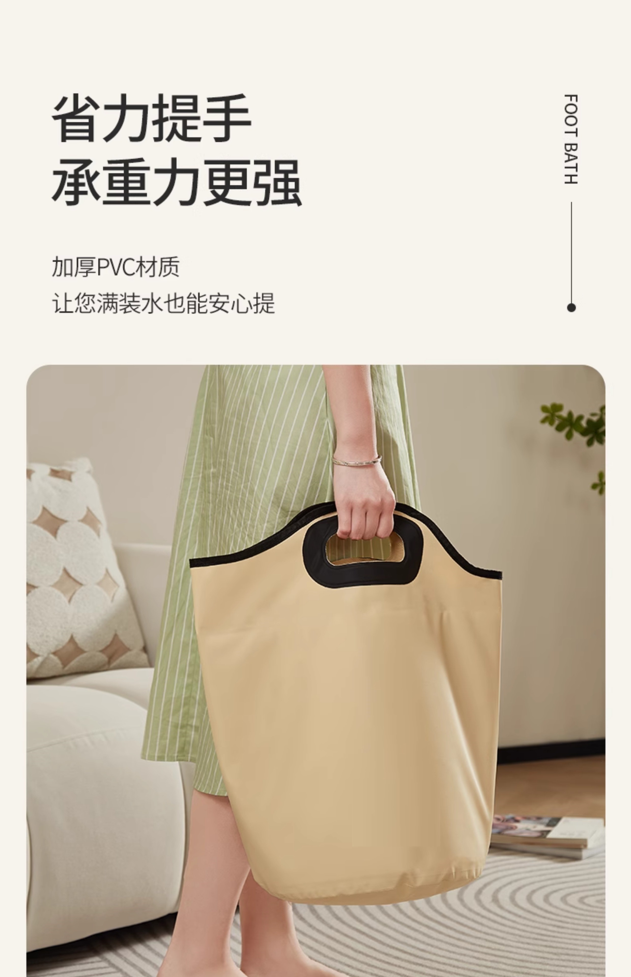 泡脚桶铝箔保温洗脚桶过小腿家用防漏足浴桶可折叠泡脚袋初心同款 【简约纯色米】初心同款一体热压夹网防漏铝箔保温 1个装
