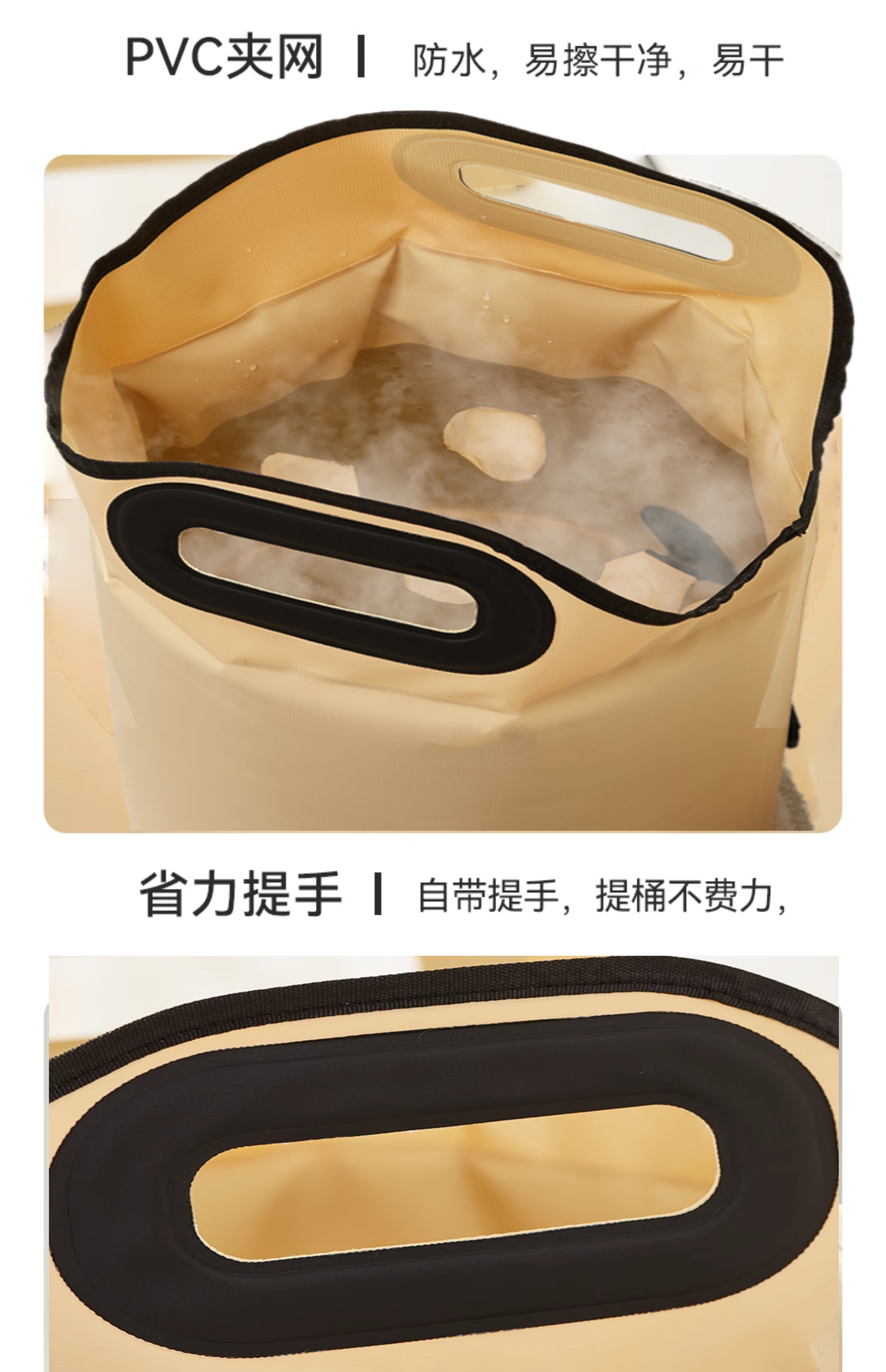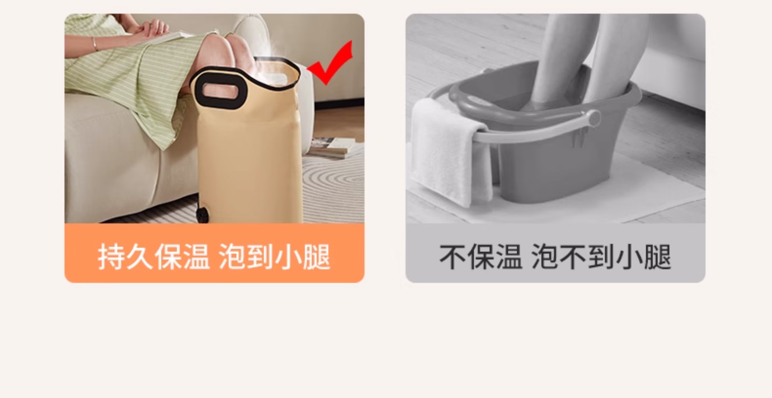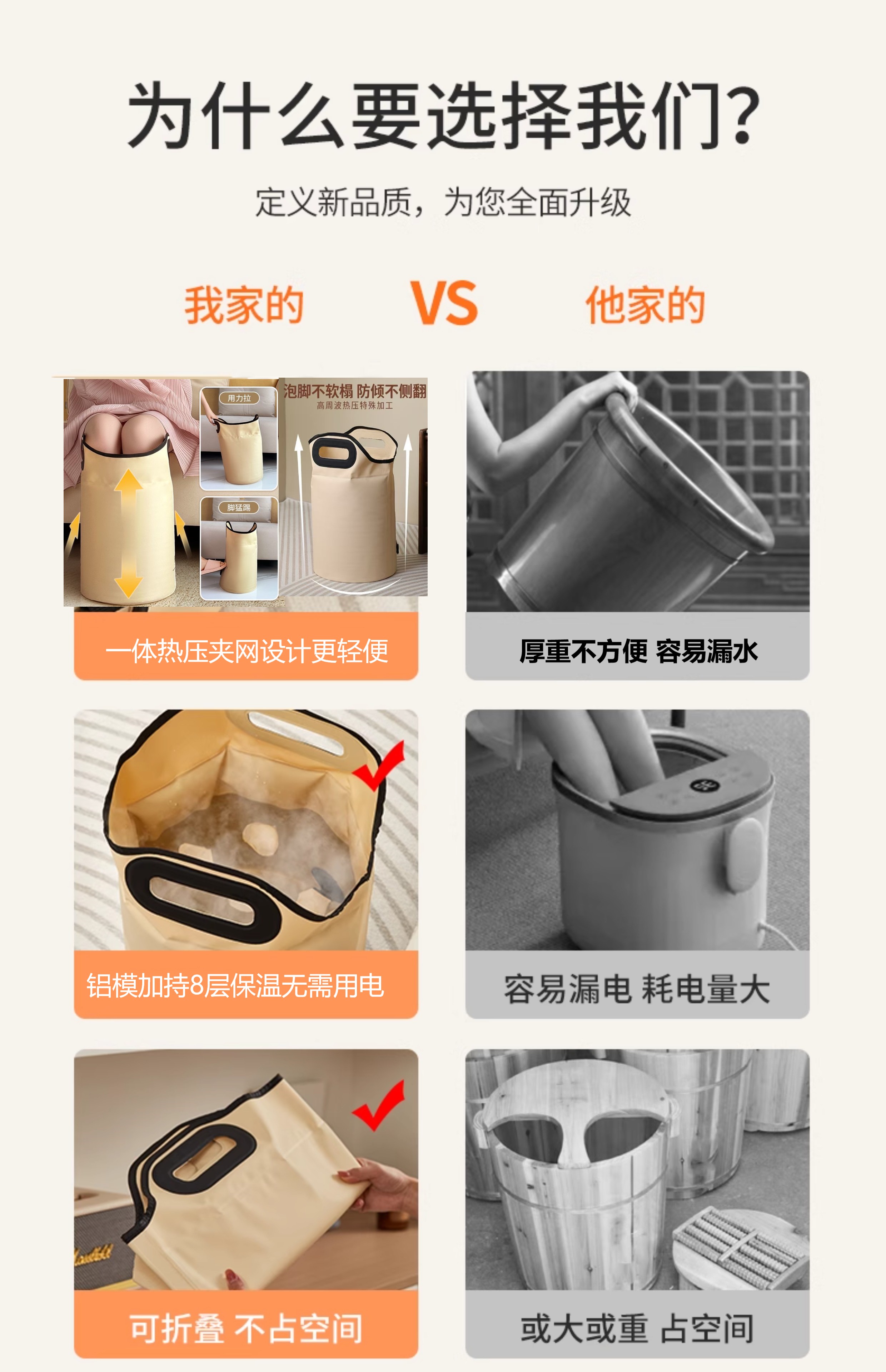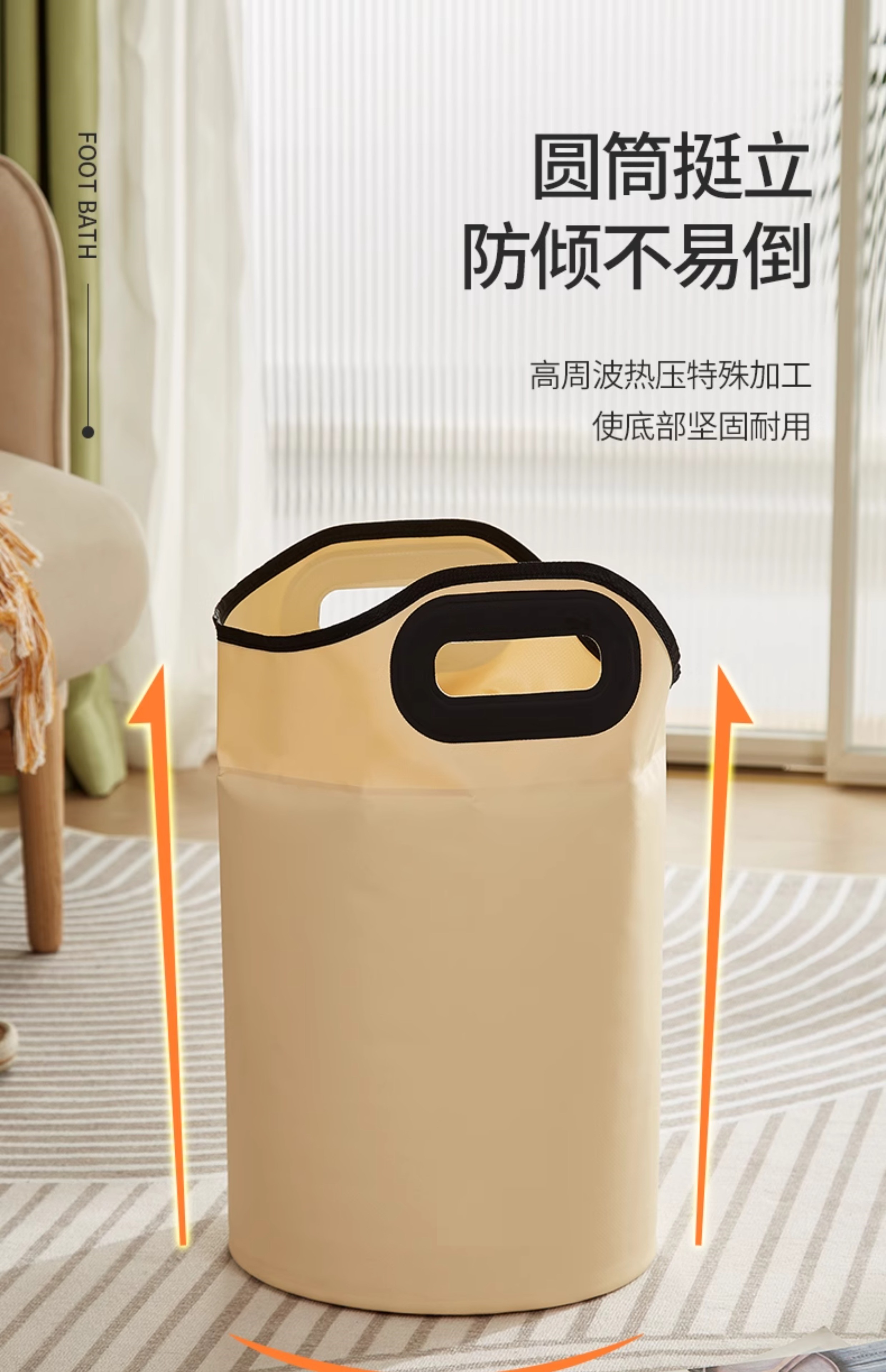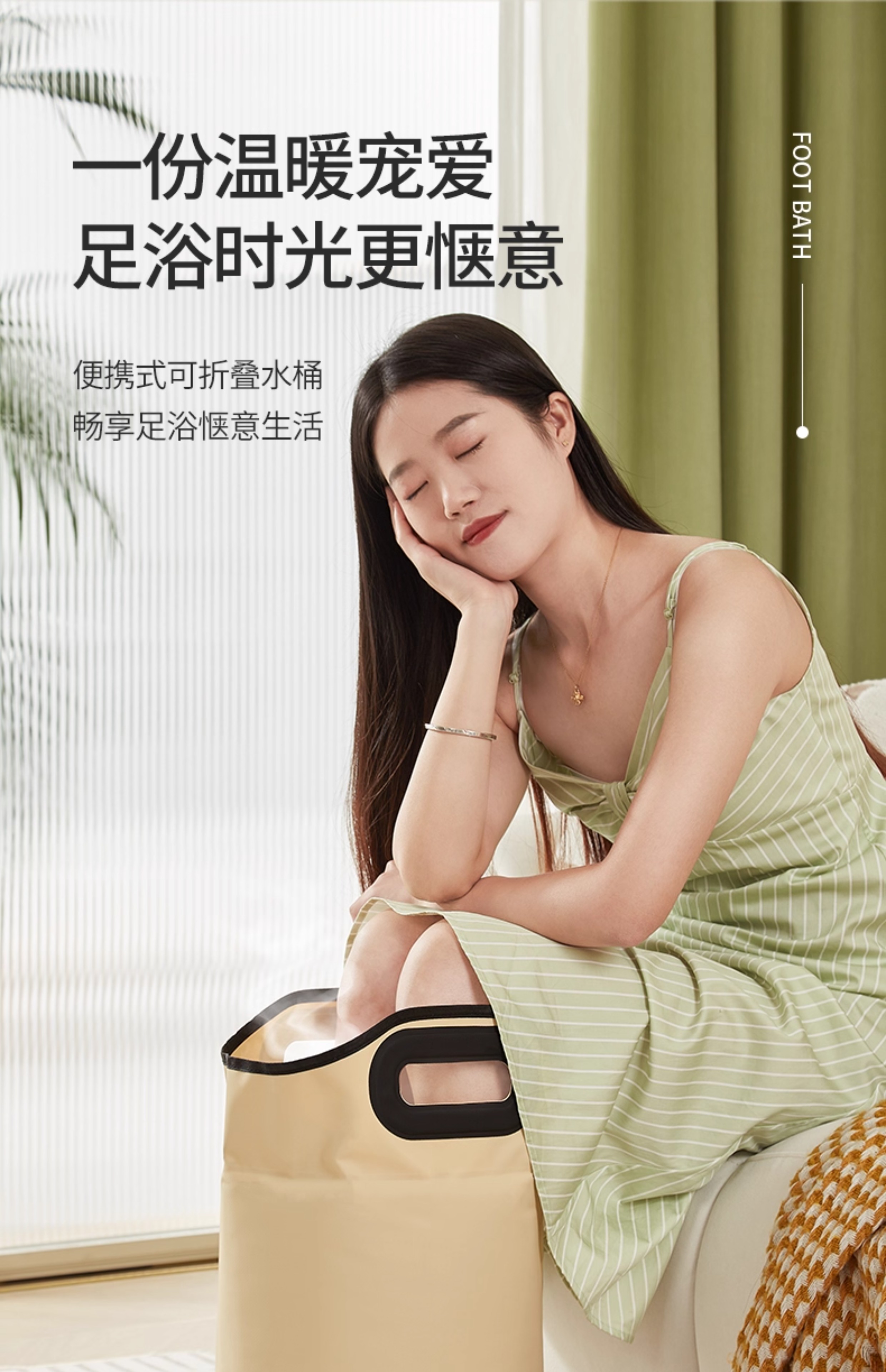 泡脚桶铝箔保温洗脚桶过小腿家用防漏足浴桶可折叠泡脚袋初心同款 【简约纯色米】初心同款一体热压夹网防漏铝箔保温 1个装