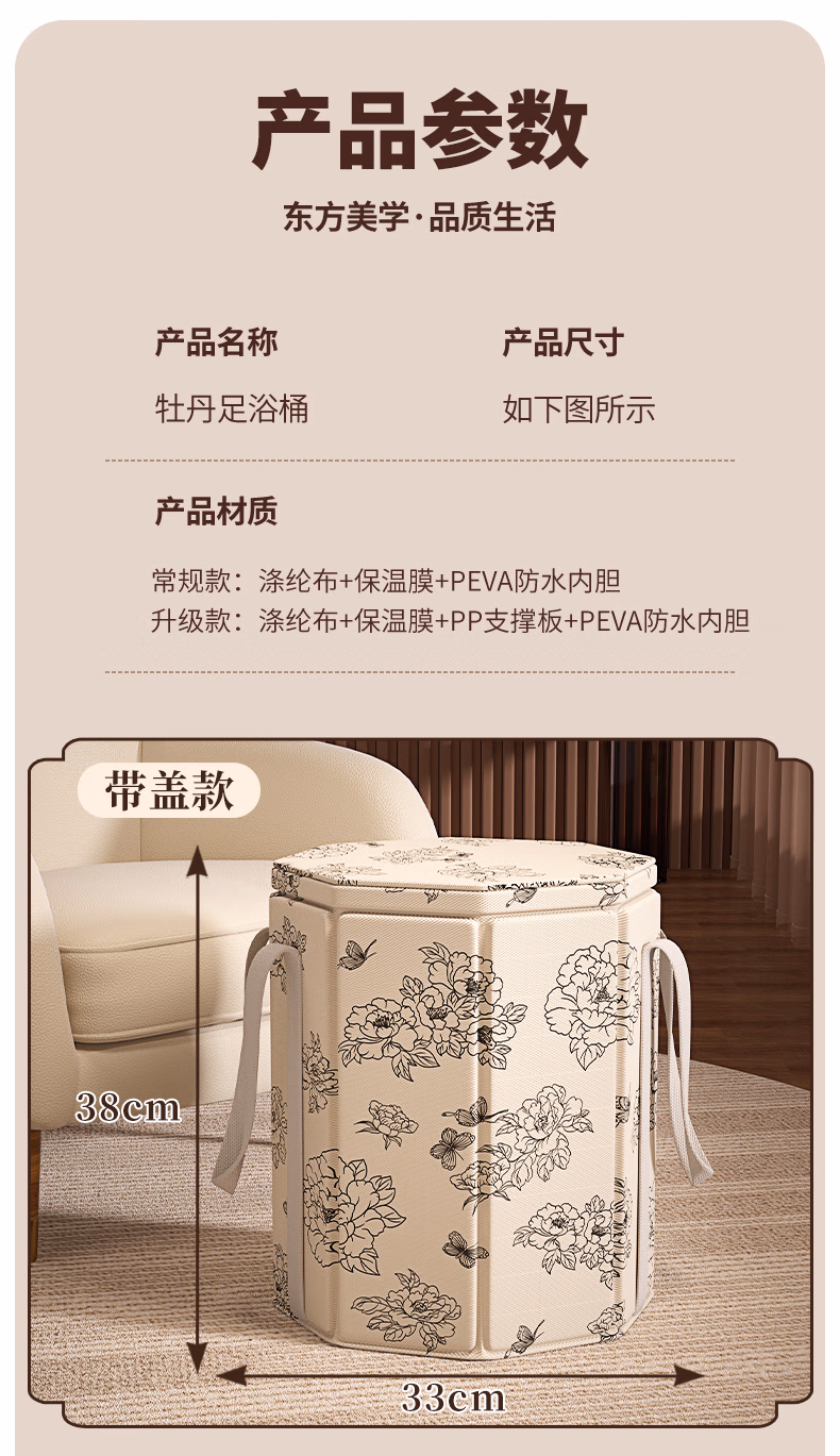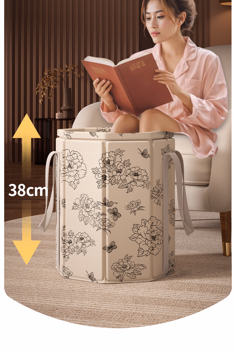 友纳保温泡脚桶家用过小腿折叠泡脚袋冬天足浴养生过膝便携洗脚盆神器 【升级防倒款】无盖加高+收纳袋【八块保温板】
