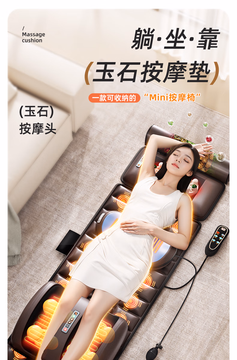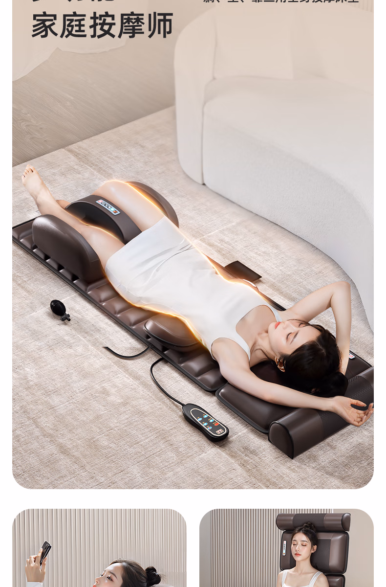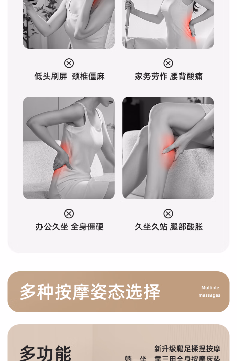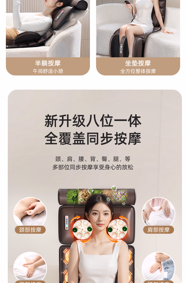奥克斯(AUX)按摩垫全身躺垫颈椎按摩器按摩靠垫多功能床垫家用按摩仪椅腰背颈肩部便携生日礼物实用送爸爸妈妈 顶配款皮革【艾草药枕+气囊腰托+腿足按摩】