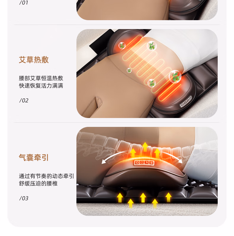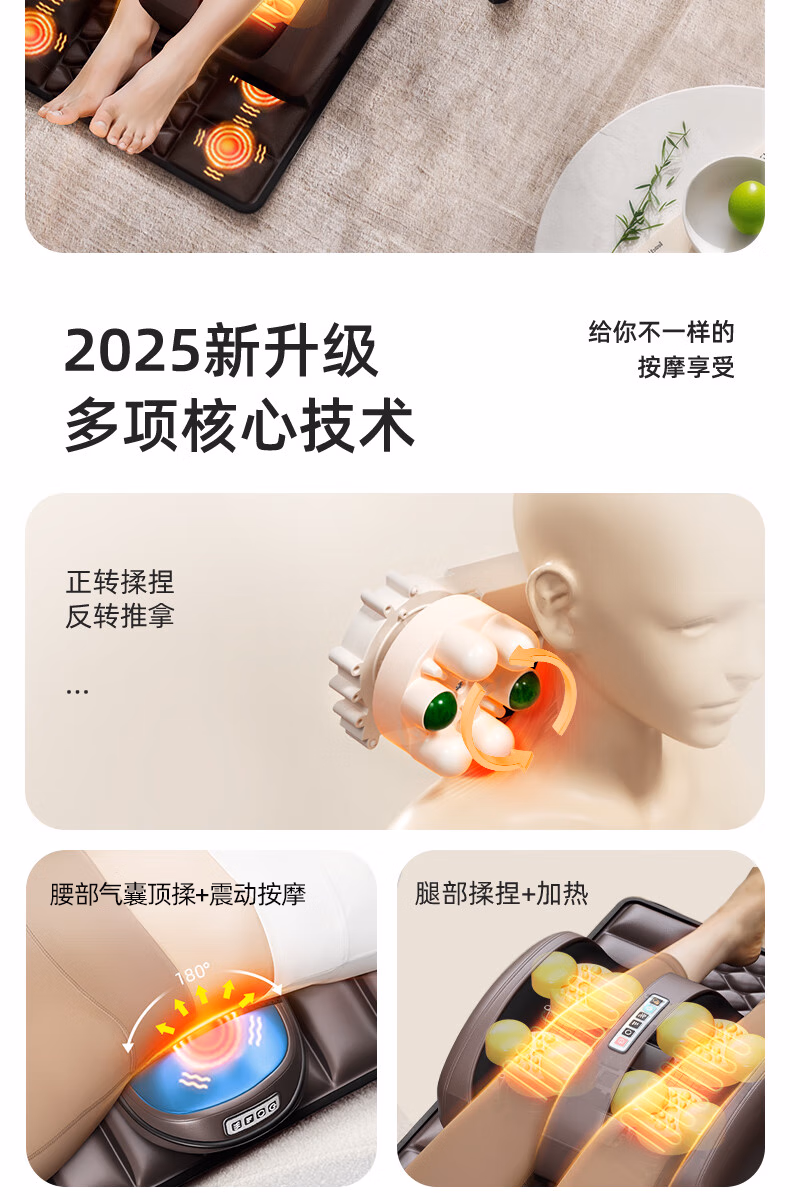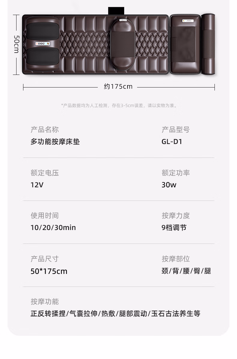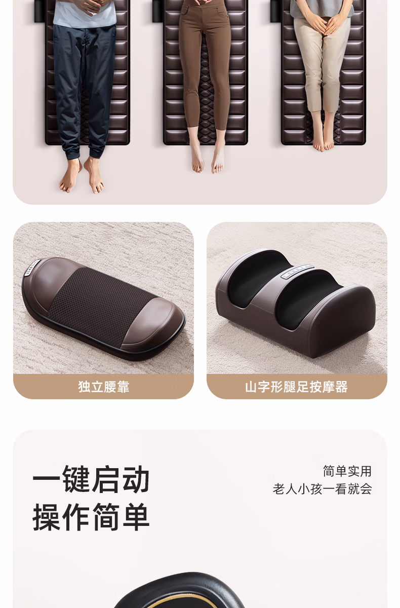 奥克斯(AUX)按摩垫全身躺垫颈椎按摩器按摩靠垫多功能床垫家用按摩仪椅腰背颈肩部便携生日礼物实用送爸爸妈妈 顶配款皮革【艾草药枕+气囊腰托+腿足按摩】