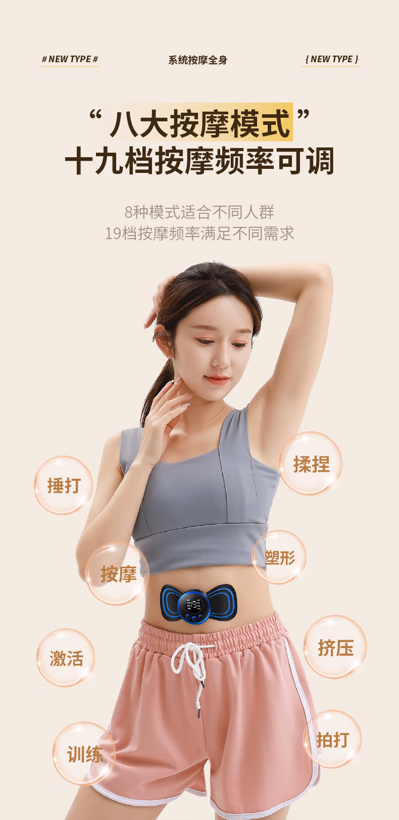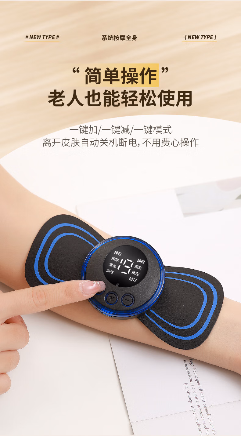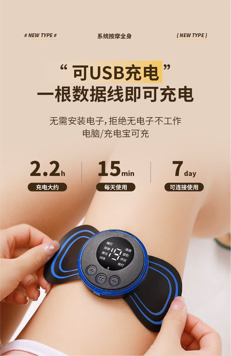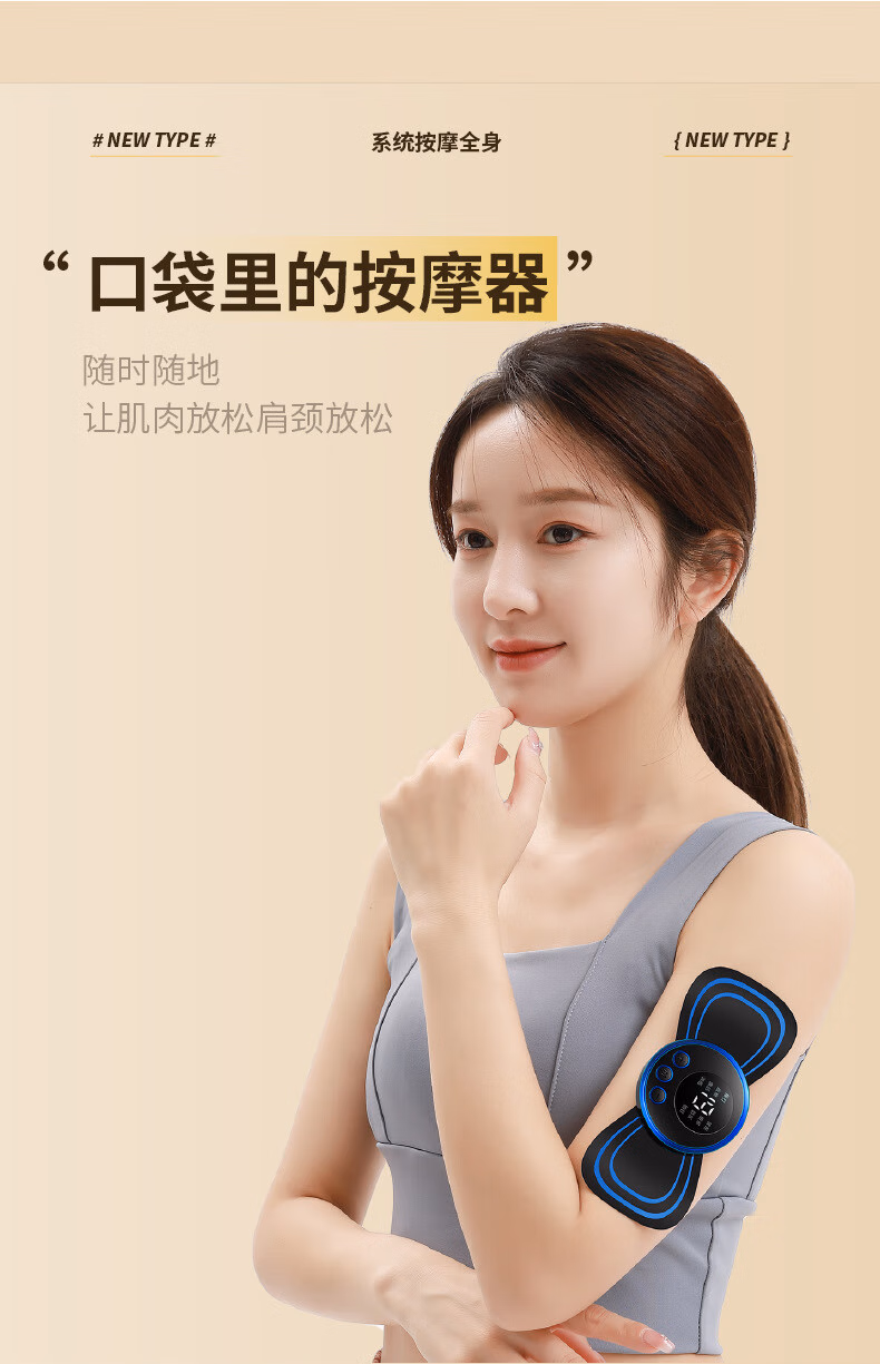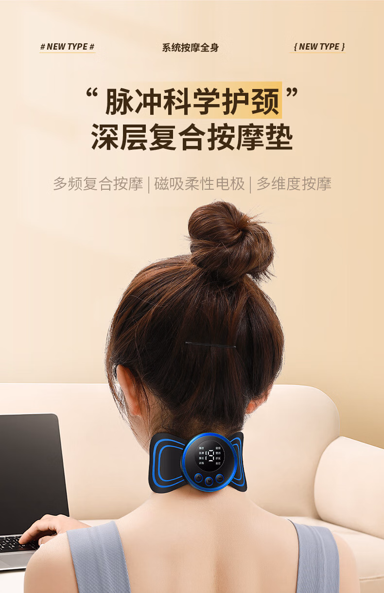 脉冲按摩贴肩颈按摩器颈椎按摩仪智能迷你便携式按摩腰部颈部全身家用多功能小型按摩贴 【主机+贴片】微电流脉冲技术(非震动非漏电)