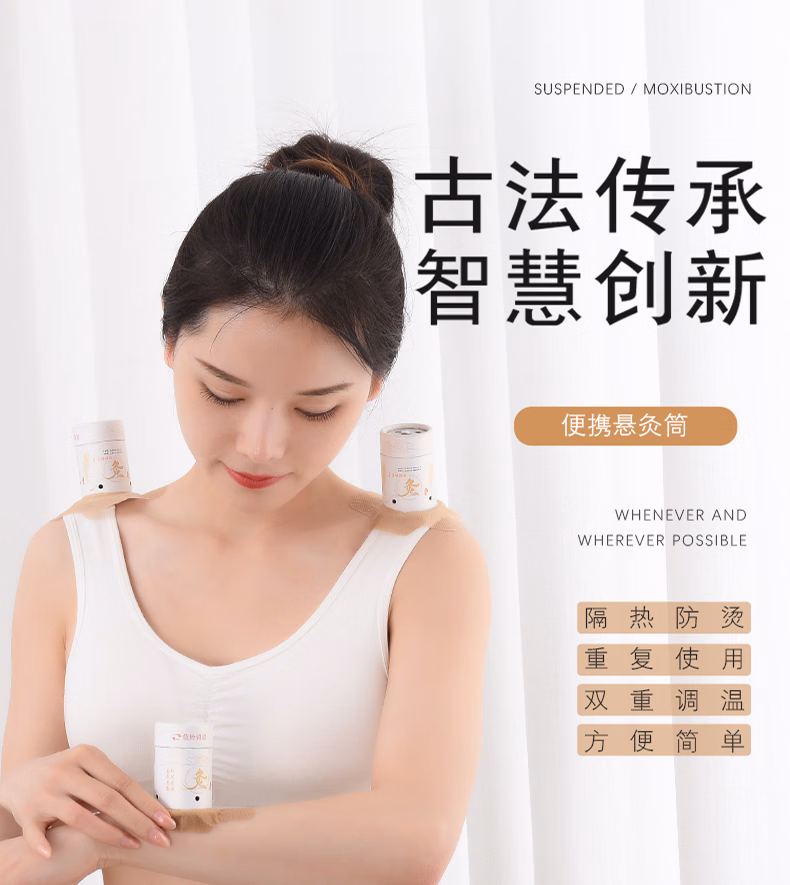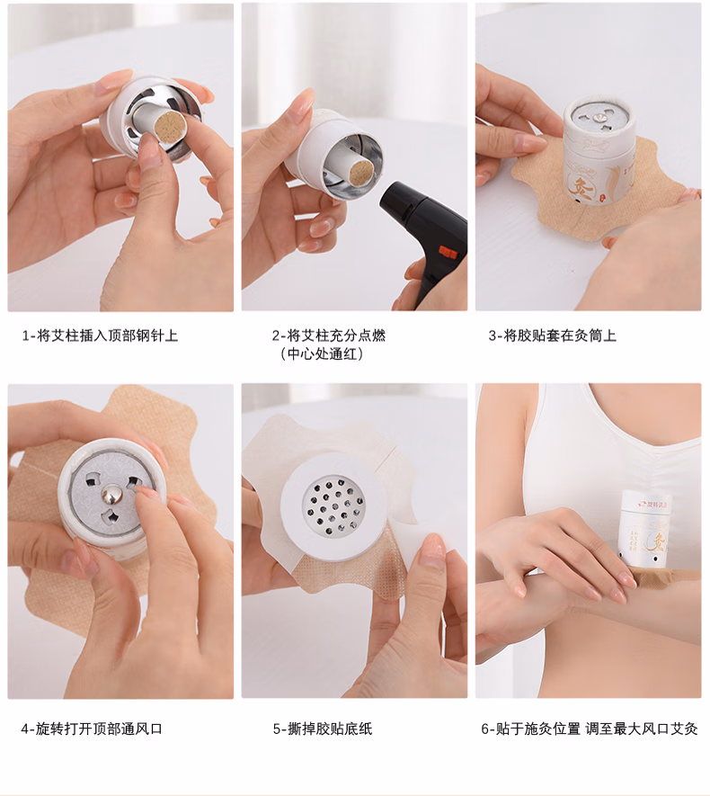 湘味堂艾灸盒子家用随身灸悬灸筒艾条艾柱艾炙贴温灸棒熏蒸仪器具小罐桶 2灸筒+60片贴+2绑带+图