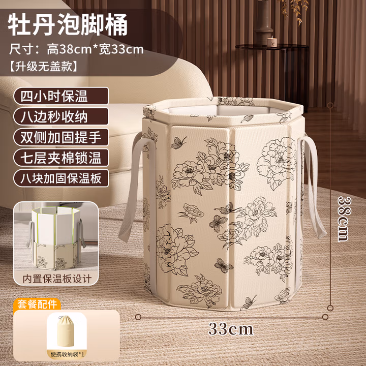 友纳保温泡脚桶家用过小腿折叠泡脚袋冬天足浴养生过膝便携洗脚盆神器 【升级防倒款】无盖加高+收纳袋【八块保温板】